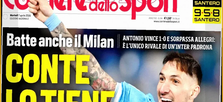 Среди главных заголовков дня фигурирует фраза: «Конте держит его на плаву». Тем временем, футбольный клуб «Наполи» одержал важную победу над «Миланом» со счетом 1:0 благодаря голу Политано. Этот результат позволил «Наполи» занять второе место в турнирной таблице, приблизившись к лидерам чемпионата.