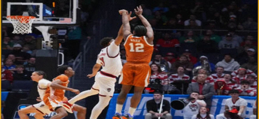 Трамон Марк забил сложный бросок с отклонением с расстояния чуть менее трех очков за 1,1 секунды до конца матча, чем обеспечил Техасу выживание после яростной попытки камбэка со стороны NC State, обыграв их со счетом 68-66 во вторник вечером в первом раунде турнира First Four.